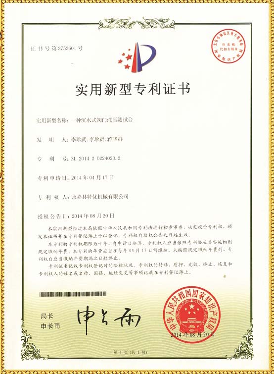 浙江省制造業(yè)首臺(套)產(chǎn)品證書